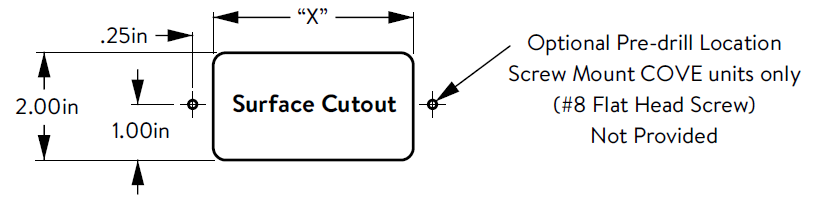 - 3 outlet model cutout hole is 2.0"W x 8.0"L
