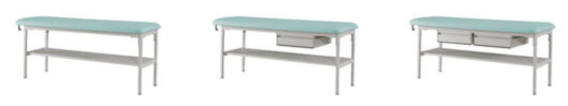 Intensa's 413 Series Exam Room Treatment Table is upholstered in easy to clean vinyl and has a powder coated base that is sturdy and durable. This model is flat with a non-adjustable cushion. Storage drawers can be added if desired.