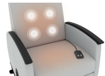 - Optional Heat and Massage Controls located on attached control wand. Includes 10’ cord with ground plug. Three heat settings, ranging 97° low to 105° high. Massage settings include lower back and lower/upper back, in low or high intensity. Automatic shutoff after one hour (Heat) or 15 minutes (Massage). IEC 60601-1 Certified.