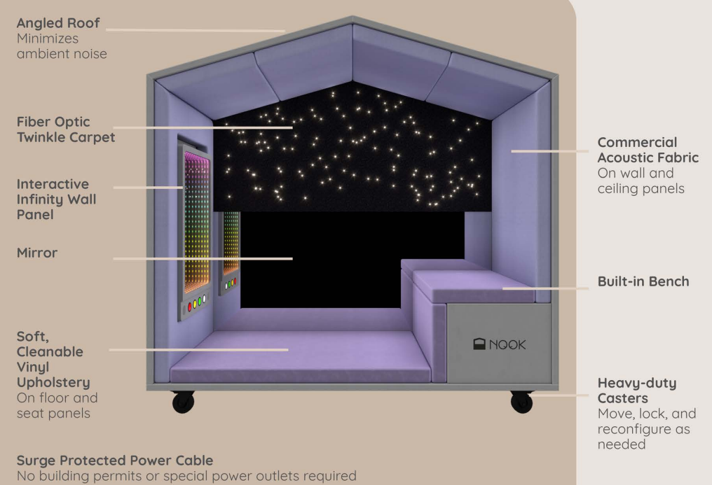 Features and Options: *Please contact us to further customize your Nook with interactive wall panels, lights and more!