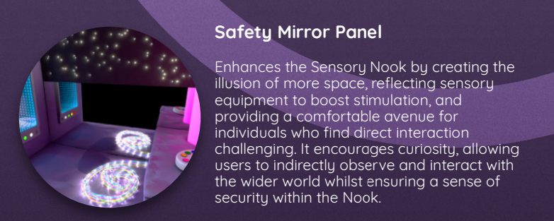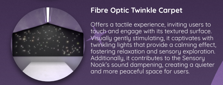 Sensory Nooks are personal mobile sensory support pods. They have been designed to provide an easy affordable way to help people with special needs and disabilities survive everyday public places. How they do this is by reducing sensory overload from the wider environment. They create a controllable capsule in which neurodiverse individuals can self regulate and function to the best of their individual ability. Public places can become totally overwhelming for people with special needs, creating sensory overload, anxiety, personal crisis situations and ultimately meltdown. These clever little mobile Nooks provide a safe space that avoids isolation and reduces challenging behavior. Sensory Nook takes the wonderful holistic benefits of Nook Pods and adds a range of interactive and passive sensory modules for seamless integration. They are highly supportive of neurodiversity and provide a calming sensory refuge for people of all ages with Special Educational Needs and Disabilities (SEND). They are a flexible way to increase accessibility and inclusion in schools, care homes, sports arenas, libraries, diners, shopping malls, medical waiting rooms, leisure venues and most public places. Sensory Nook is not only an effective provision for people with special needs but it is an actively calming system that supports the well-being of everyone.