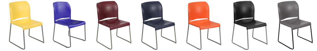This Heavy Duty Contoured Stacking Guest Chair has a weight capacity of 880 lbs. You won't find a more sturdy stacker anywhere and it comes in 7 cheery colors. Double support braces and a powder-coated frame make this chair extremely durable and supportive.