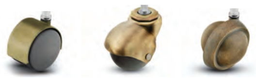 Caster Options: Brass Hooded Black, Antique Bronze Hooded Caster - 2” Rubber Ball, 2" Metal Ball Carpet Caster